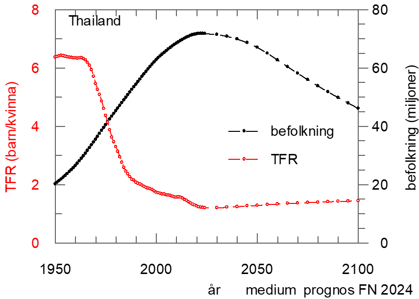 På 20 år, från 1960 till 1980, lyckades Thailand med sitt familjeplaneringsprogram minska antalet födda barn per kvinna från över 6 till under 2. Med kreativitet och humor lyckades man på frivillig väg vända utvecklingen. https://overpopulation-project.com/thailand-success-story-family-planning-with-creativity-and-humor/