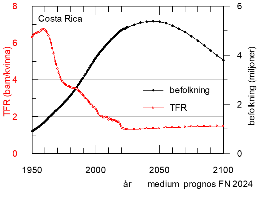 Det är dessutom intressant att jämföra hur Kina’s påtvingade ett-barns politik förhåller sig till exempel Costa Rica’s frivilliga. Kina med sin oerhörd stora befolkning har trots ”ett-barns politik” ökat med 750 miljoner människor mellan 1960 till 2017. Utan en snabb nedgång i antalet barn per kvinna, som ändå aldrig kom ned till ett barn, hade befolkningstillväxten istället för 750 miljoner människor extra mellan 1960- 2017 ha varit 1150 miljoner. Såklart var det förfärligt med tvungna aborter, men det är även mycket lidande förknippat med att inte kunna få abort om man vill det, som det nu är i många länder.